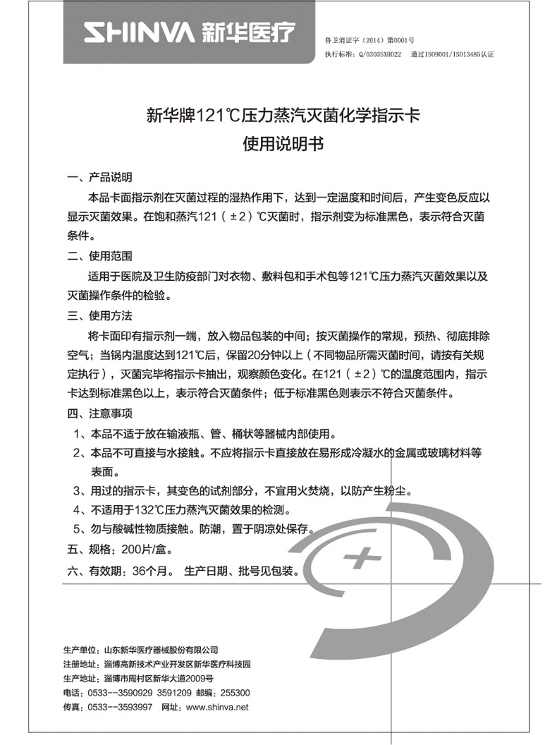 新華牌121℃壓力蒸汽滅菌化學(xué)指示卡(新華)