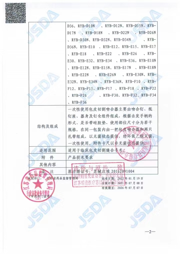 蘇械注準(zhǔn)20162021004