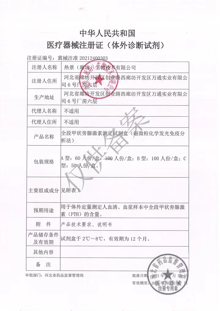全段甲狀旁腺激素測(cè)定試劑盒(磁微?;瘜W(xué)發(fā)光免疫分析法)【熱景(廊坊)】