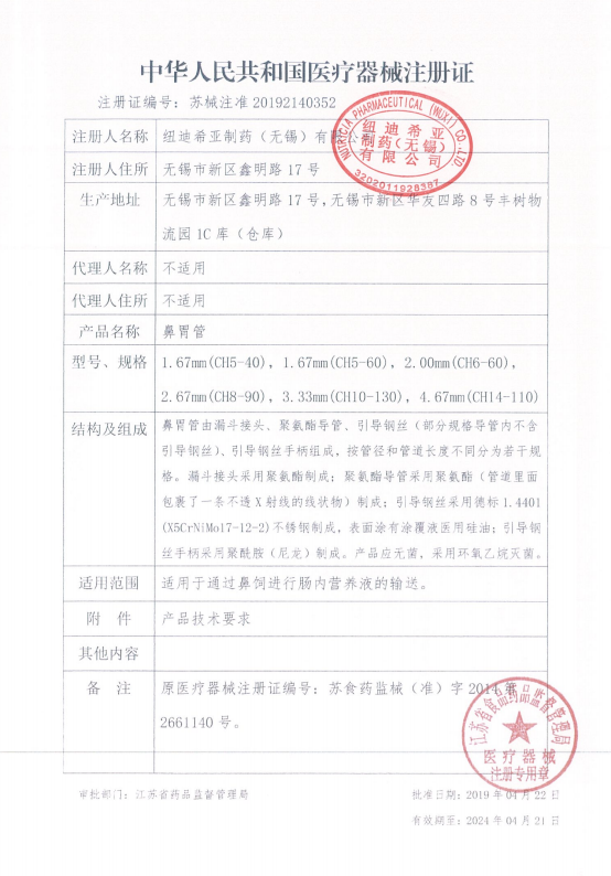 鼻胃管【紐迪希亞制藥(無錫)】